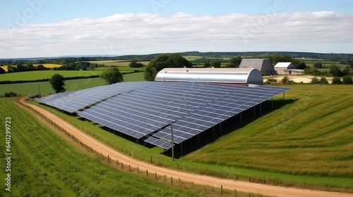 © Mohammad, Obraz premium Agrivoltaics, Solar panels used along with agricultural crops, Renewable energy ESG 2050 carbon neutrality,