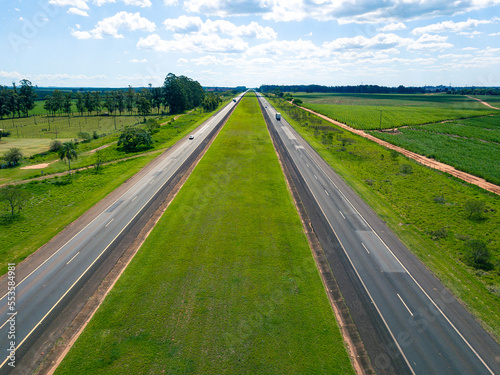 Naklejka premium Agro plantação vista aérea fazendas estrada