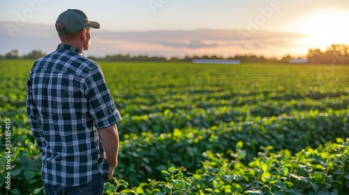© BG_Illustrations, Fototapeta premium Agronomist Analyzing Soybean Growth in Field
