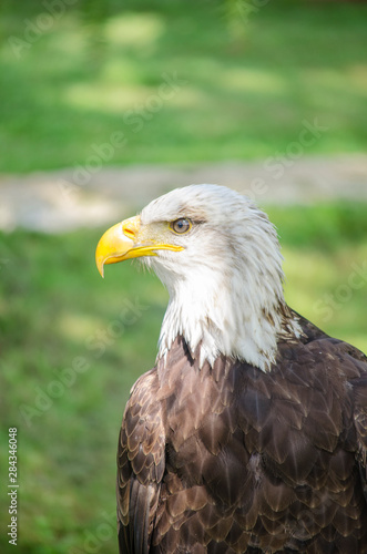 © fotisma, Obraz premium Aguila calva de perfil con sol