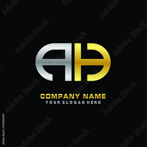 Obraz premium AH initial letters looping linked oval elegant logo silver, gold