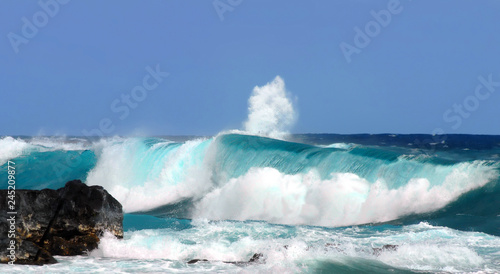 © bonniemarie, Fototapeta premium Ahalanui Black Lava Rock Beach
