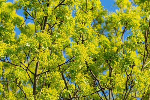 © biggi62, Fototapeta premium Ahornbaumblüten vor blauem Himmel