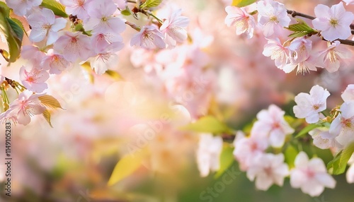 © AI_ALICE, Obraz premium 春の美しい桜の木と花びらと空の背景。AIで生成