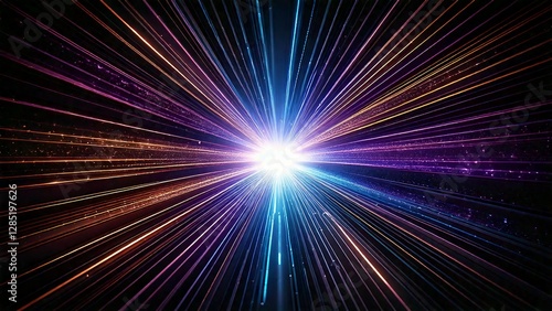 © FREEDOM, Obraz premium 放射状 魔法のようなキラキラ 宇宙風サンバースト 青紫 ピンク 赤 近未来の雰囲気 背景素材 16:9サイズ AI生成素材