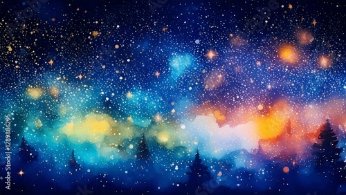 © FREEDOM, Naklejka premium 魔法のような水彩風のキラキラ夜空 AI生成素材