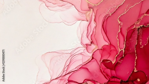 © FREEDOM, Fototapeta premium 高級感のある薄くて淡いアルコールインクアート ルージュ マーブル模様 余白あり 背景素材 チラシ・バナー・動画素材 16:9サイズ AI生成素材