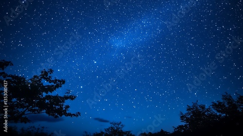 Naklejka premium 푸른 밤하늘을 수놓은 무수한 별빛, AI 생성