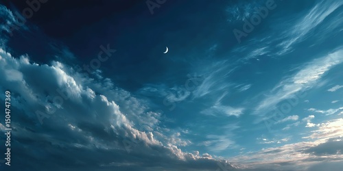 Fototapeta premium 초승달과 구름이 어우러진 저녁 하늘 풍경 AI 생성
