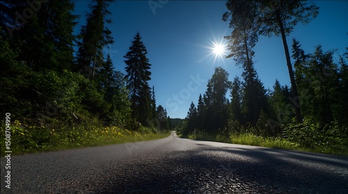 © 윤상필, Obraz premium 숲속에 감싸인 고요한 도로 풍경 AI 생성