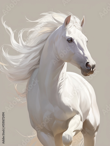 Fototapeta premium 美しい白馬が立つ幻想的で優雅なイラスト「生成AI」