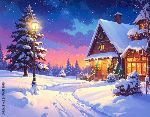 © KUU, Fototapeta premium クリスマス 雪 生成AI 背景