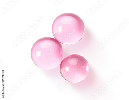 © saha, Fototapeta premium プルプル美容液感のあるピンク水滴 背景透明 反射光 ジェネレーティブAI