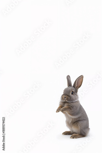 Obraz premium 縦画像向け白背景素材、グレーの子うさぎ全身を立ち姿で表現したかわいい動物デザイン.生成AI