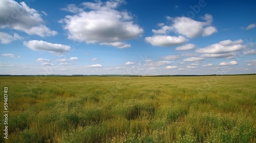 © fumoto-lab, Obraz premium 地平線まで続く草原と青空:AI作品