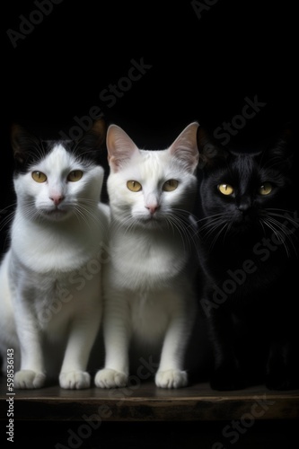 Obraz premium 黒猫と白猫とハチワレの3匹:AI作品