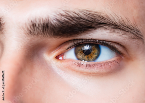 © globeds, Obraz premium 未来を見通すビジネスのイメージフォト 白人男性の目、虹彩、瞳のマクロ撮影 クローズアップAI生成画像