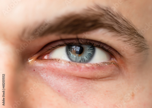 © globeds, Obraz premium 未来を見通すビジネスのイメージフォト 白人男性の目、虹彩、瞳のマクロ撮影 クローズアップAI生成画像