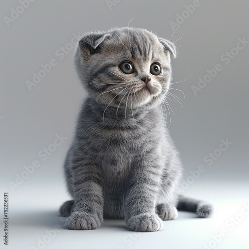 © Coo, Obraz premium 座っているグレーのスコティッシュフォールド猫(正面,背景無し,白背景)-生成AI
