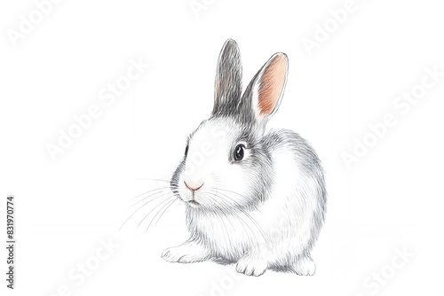 Obraz premium アナログタッチ、手描き風の可愛いパンダウサギ、兎のイラスト 卯年 年賀状素材 AI生成画像