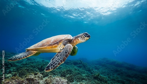Obraz premium 바닷속 헤엄치는 거북이, 생성형AI