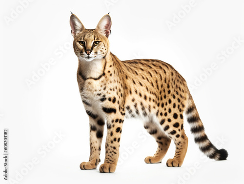 Fototapeta premium サーバル 白背景 AI生成画像 ジェネレーティブAI