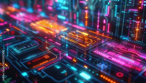 © NeeArtwork, Obraz premium AI algorithm learning from data, holographic charts, futuristic interface, vibrant colors, high resolution, advanced technology,