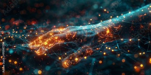 © Ivan, Obraz premium AI and Machine Learning Banner with Robot and Human Hands