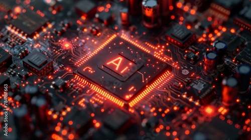 Obraz premium AI artificial intelligence concept, Close up of microprocessor on mainboard...