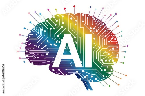 © Leo Rohmann, Fototapeta premium AI Brain Chip neurotrophin 3. Artificial Intelligence cognitive computing impact mind ensemble learning axon. Semiconductor cochlear implants circuit board structural connectivity