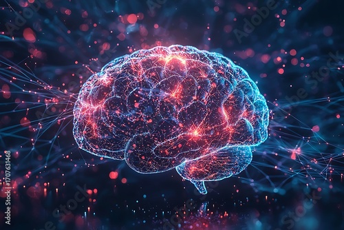© Srijony, Fototapeta premium AI brain in glowing lights high resolution picture