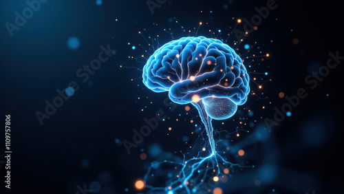 © Tameem, Fototapeta premium AI brain with sparks on a black background representing artificial general intelligence.