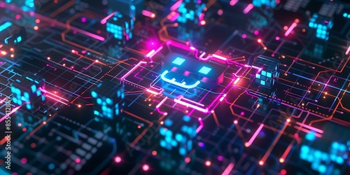 © Craig, Fototapeta premium AI Chat Bot. Machine Learning. Digital Mind Technology Concept. 3D render Illustration