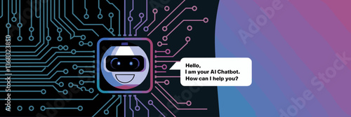 Obraz premium AI chatbot conversation with binary code, a smiling robotic face, and a futuristic gradient background