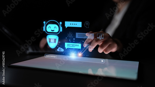 Fototapeta premium AI chatbot improves virtual assistant interaction. AI chatbot processes text,...