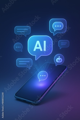 © Sipon Ray, Fototapeta premium AI Chatbot Interface Hovering Above Smartphone in Futuristic Digital Style