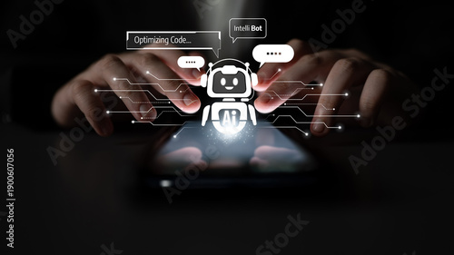 Naklejka premium AI chatbot using prompt engineering and LLM deep learning delivers...