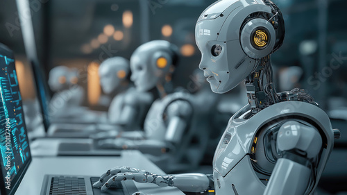 © Pavithiran, Fototapeta premium Ai Chatbots working and chatting in computer, Generative Ai