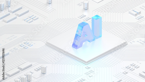 Fototapeta premium AI chip. Chip on circuit board. Technology background. Artificial intelligence. 3d illustration.