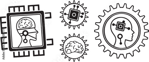 © MD.Kawsar Hossan, Obraz premium AI chip icon set computer icon,Artificial intelligence ai processor chip vector
