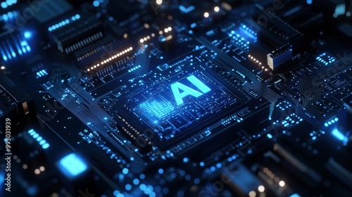 Obraz premium AI Chipset Motherboard Glowing Circuitry, 3D Render, Artificial Intelligence,...