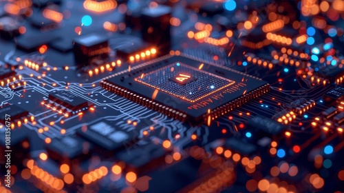 © video, Fototapeta premium AI Circuit Board Chip 3D Rendering Artificial Intelligence Technology Background