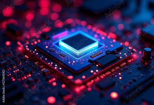 © Mahmudul, Fototapeta premium AI. Circuit board. Technology background. Central Computer Processors CPU concept. Motherboard digital chip. Tech science background. Integrated communication processor. 3D illustration