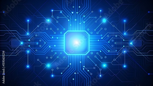 Obraz premium AI circuit board with glowing electronics elements on blue backdrop. UI and...