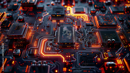 Obraz premium AI circuit board with system core activation processing data information technology and science concept detailed circuits glowing components