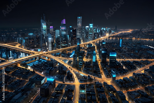 Fototapeta premium AI City Map:A futuristic, AI-generated city map rendered in 3D