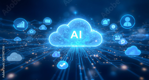 © Imam, Obraz premium AI Cloud Computing Concept: Artificial Intelligence, Big Data, and Digital Network. Technology and Global Connectivity.