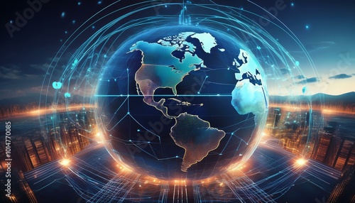 © Rahmat , Obraz premium AI-controlled drone swarm managing security systems in a smart city