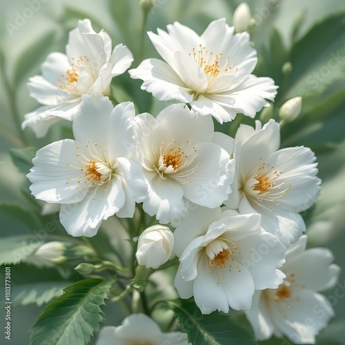 Obraz premium AI-created floral portrait: white blooms on a verdant backdrop.