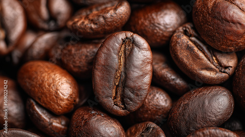 © nhannan, Naklejka premium Ai dark roasted coffee beans ready for brewing in a cozy kitchen setting